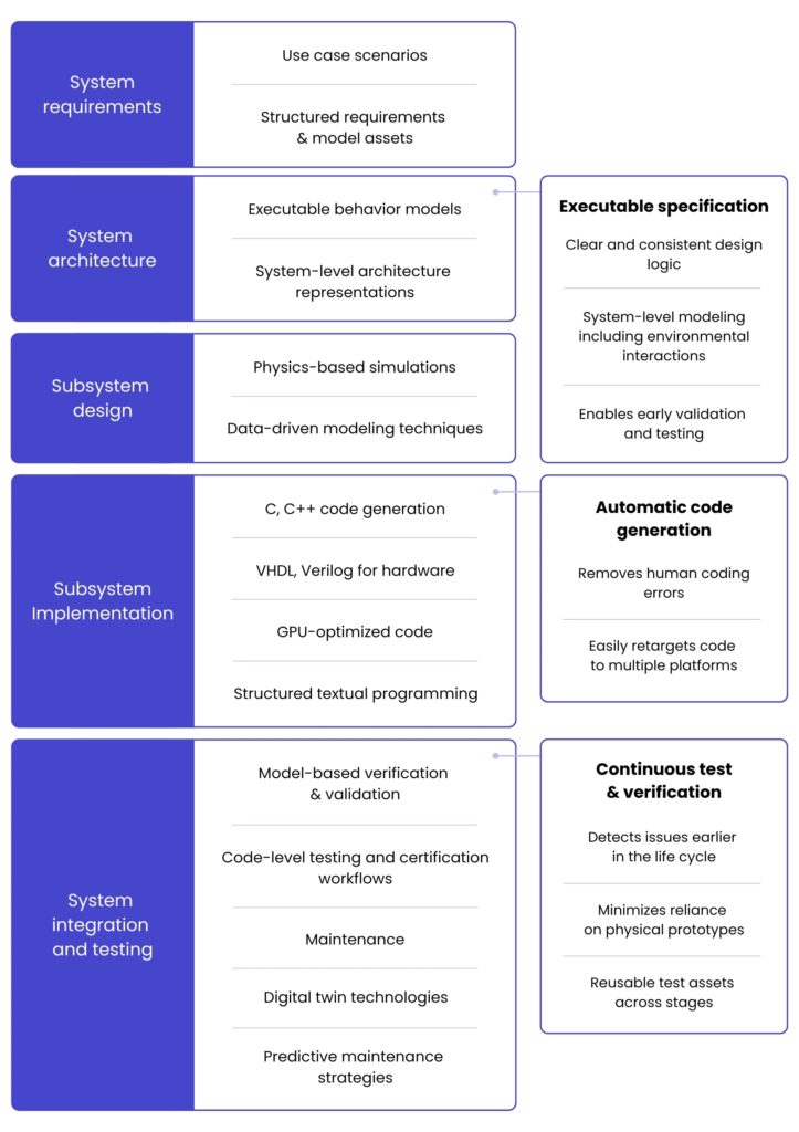 Traditional development often separates requirements, architecture, implementation, and testing into different tools and environments. In contrast, MBD keeps everything connected within a unified, model-centric workflow. Requirements are transformed into executable architectures, enabling early validation, automated code generation, and continuous testing from day one.