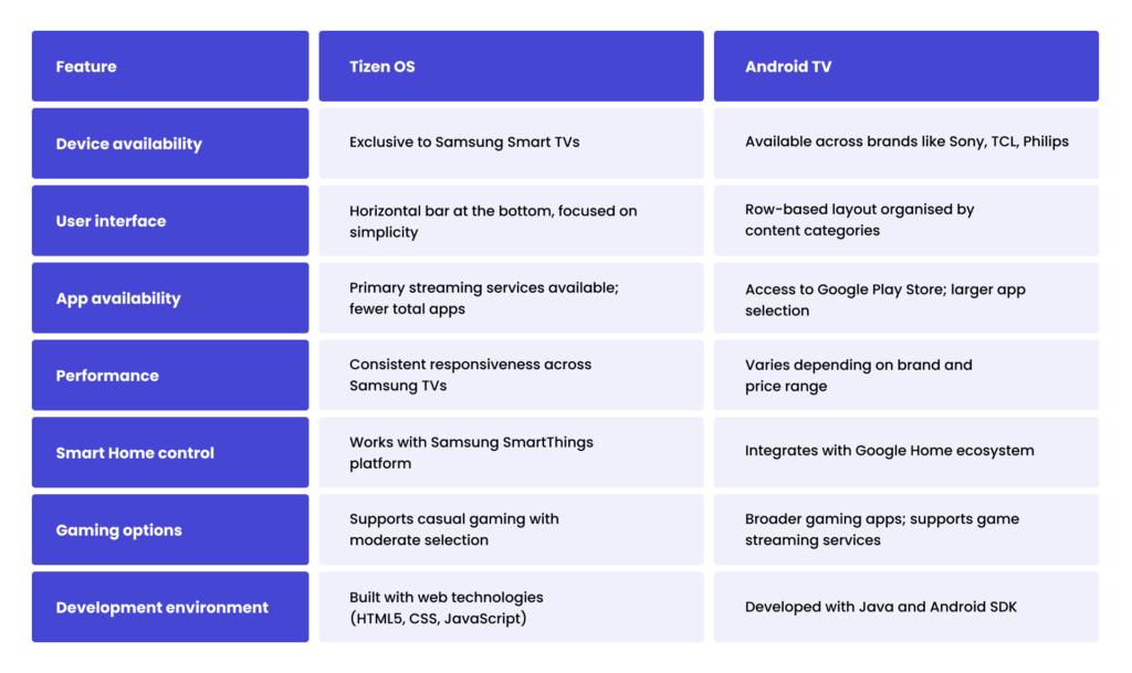 Samsung Tizen OS vs. Android TV: key differences