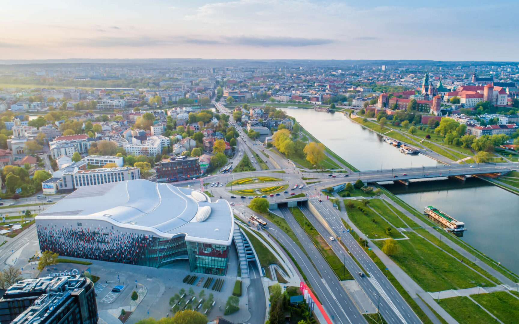 An attractive, multifunctional district with easy access to shops, restaurants and the Vistulan Boulevards.