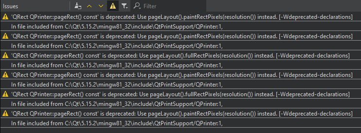 In Qt 5.15, all things that will not be included in Qt 6 are marked as deprecated. By default, the use of this code will pop up as a compiler warning. But you have the option to treat it like an error.